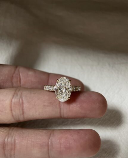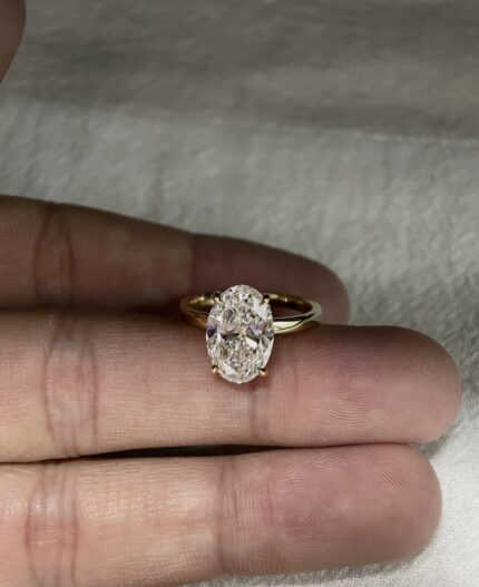 2-Carat Lab-Grown Oval Diamond Ring: Hidden Halo in 14K Gold