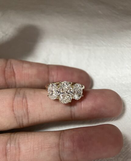 6.50-Carat Three-Stone Oval Lab-Grown Diamond Ring: E Color, VVS1 Clarity in 18K Yellow Gold