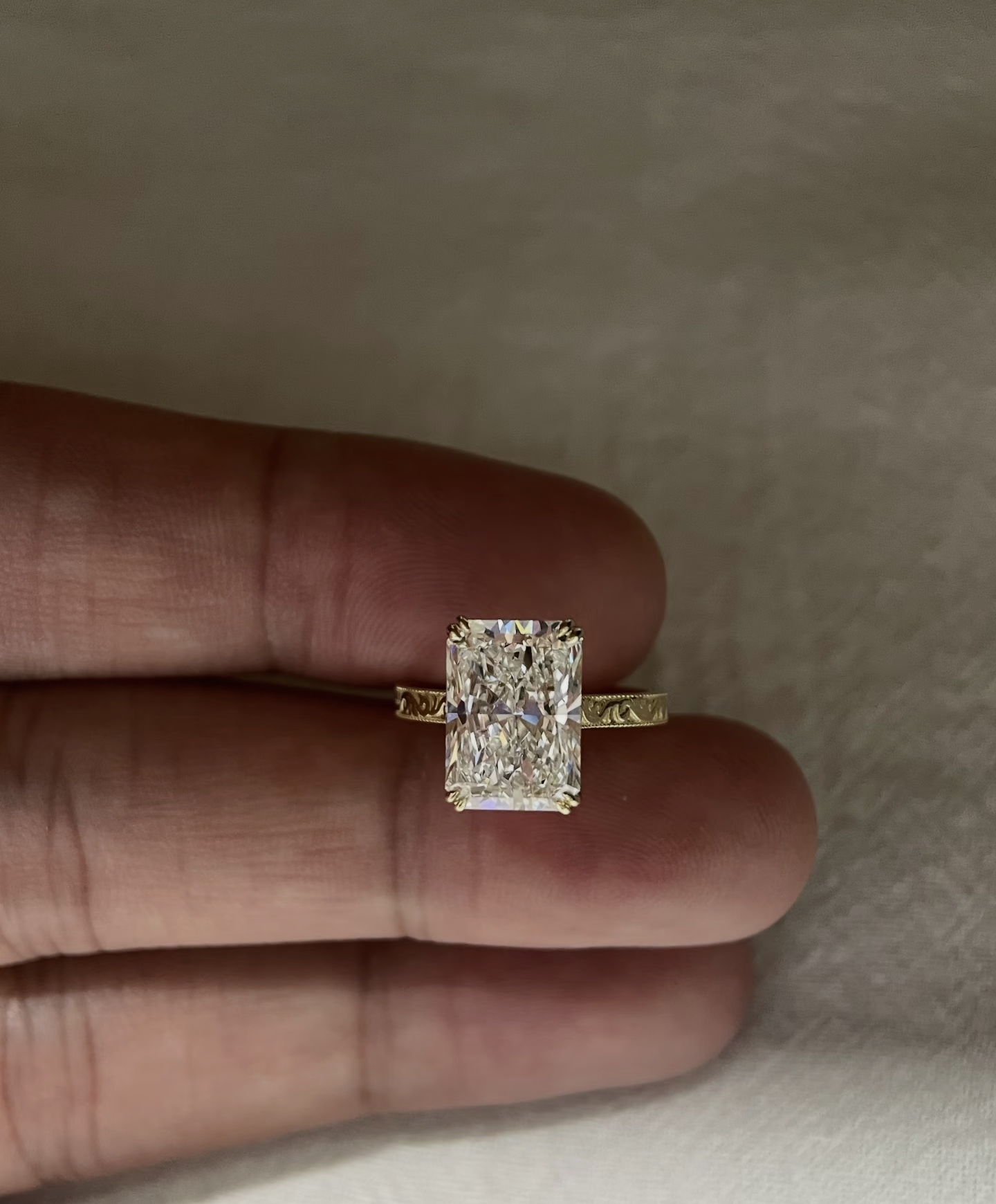 4.0-Carat Radiant Cut Lab-Grown Diamond Ring: D Color, VVS1 Clarity in 18K Yellow Gold with Milgrain